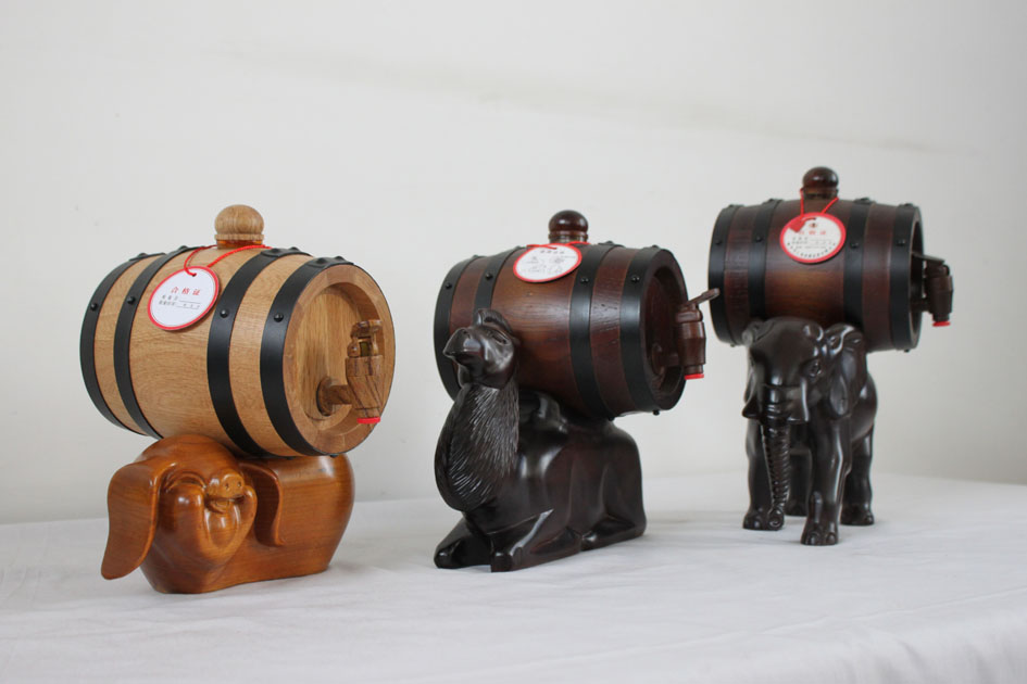 手工打造,不斷發展 把挑選的木材進行品質,我們只使用品質好的原材料進行裁切打磨,每一塊二木材必須要平整統一,這樣在材料無蠟拼接時才可以無縫隙。為了使產品在日后使用時更長久衛生,拼接成型的產品還要進行高溫預熱、、安裝端板等系列強化程序。此,雛形產品便加工完成。為了使產品更加美觀牢靠,還要經過磨砂拋光、烘烤碳化、壓箍等工藝進行美化、增加強度的處理,經過的純手工處理后的酒桶才可以經得起歲月考驗。